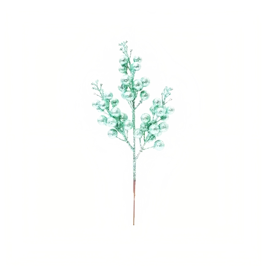 Pick com glitter galhos e frutas verdes, para decoração de Natal.