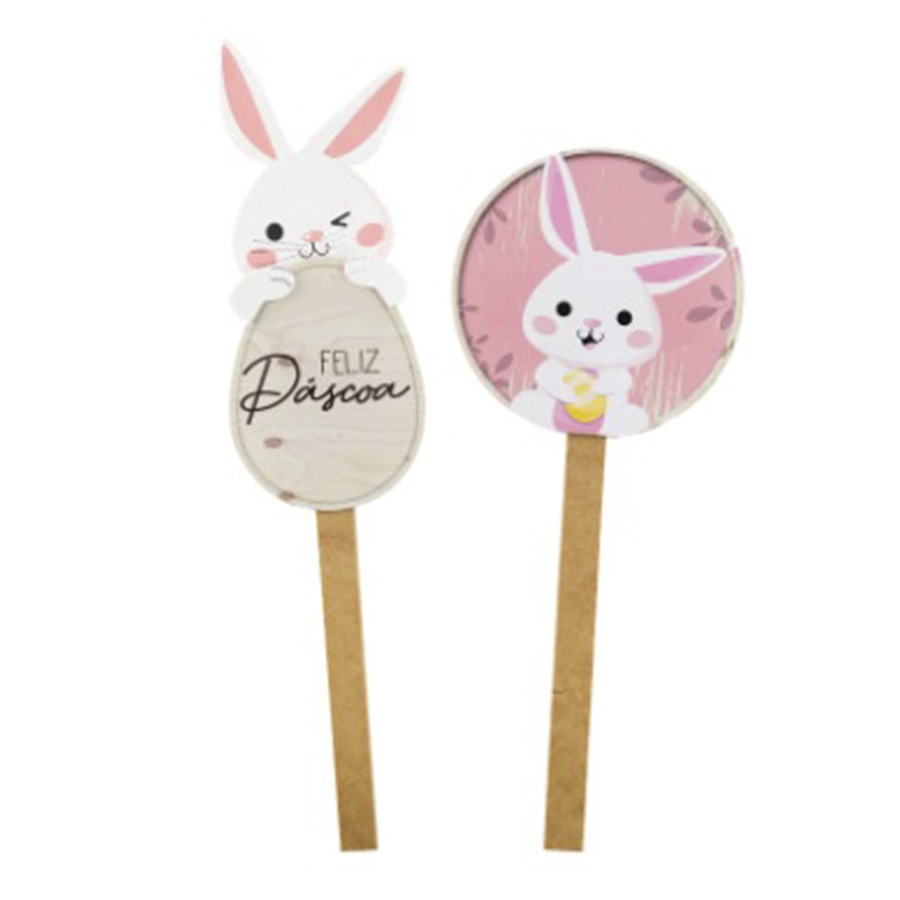 Pick Decorativo de Páscoa - Coelho e Ovo Rosa - 2 unidades - Grintoy - Rizzo
