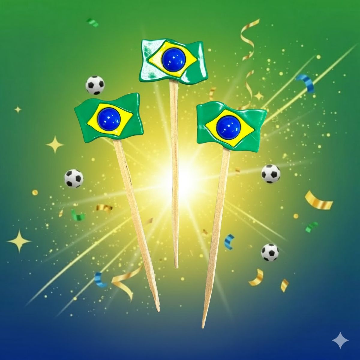 Espete o pick em doces, bolos, salgados ou utilize em arranjos e centros de mesa. Combine com balões, copos, pratos e outros itens nas cores do Brasil para criar uma mesa completa e harmoniosa.