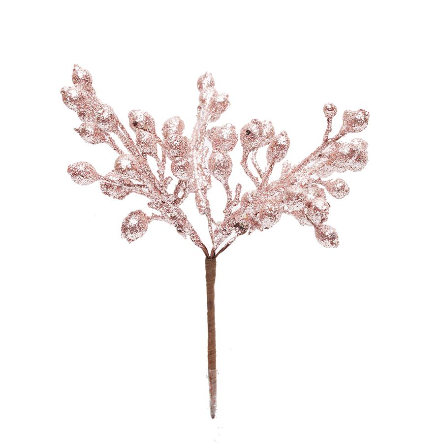 Pick Galho Decorativo - Frutas Rose Gold com Glitter - 15cm - 01 unidade - Cromus Natal - Rizzo