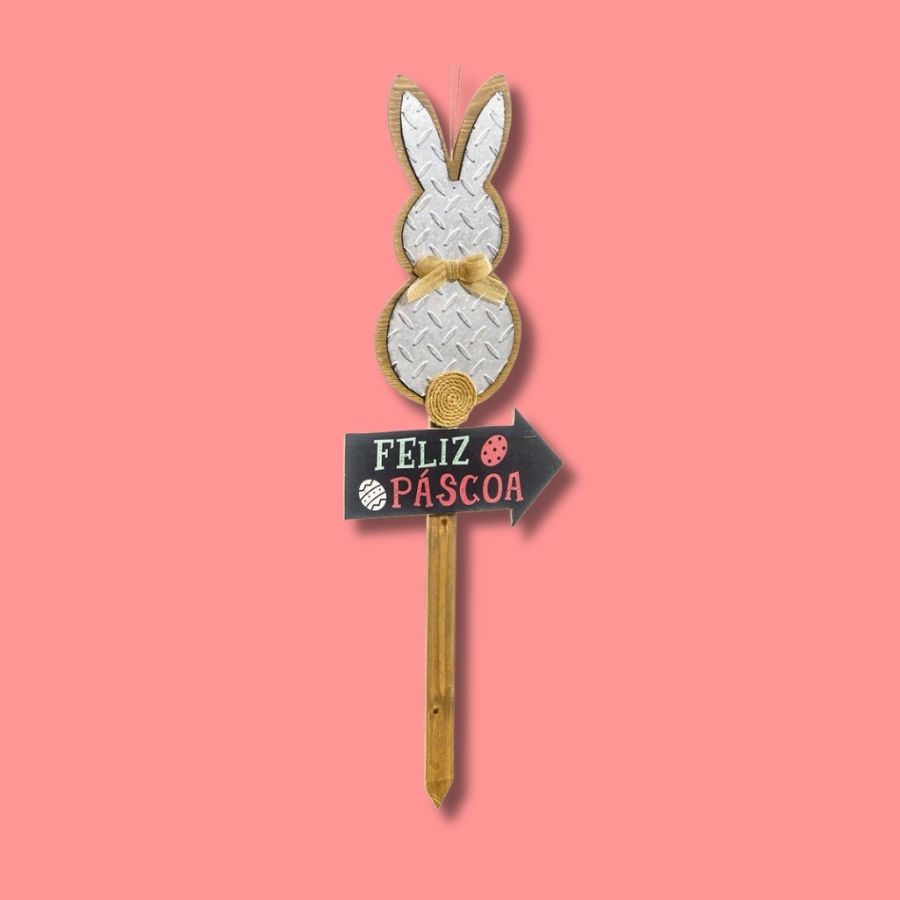 Placa Decorativa Jardim Coelho com Pompom Feliz Páscoa 91cm - 01 unidade - Cromus Páscoa - Rizzo Embalagens