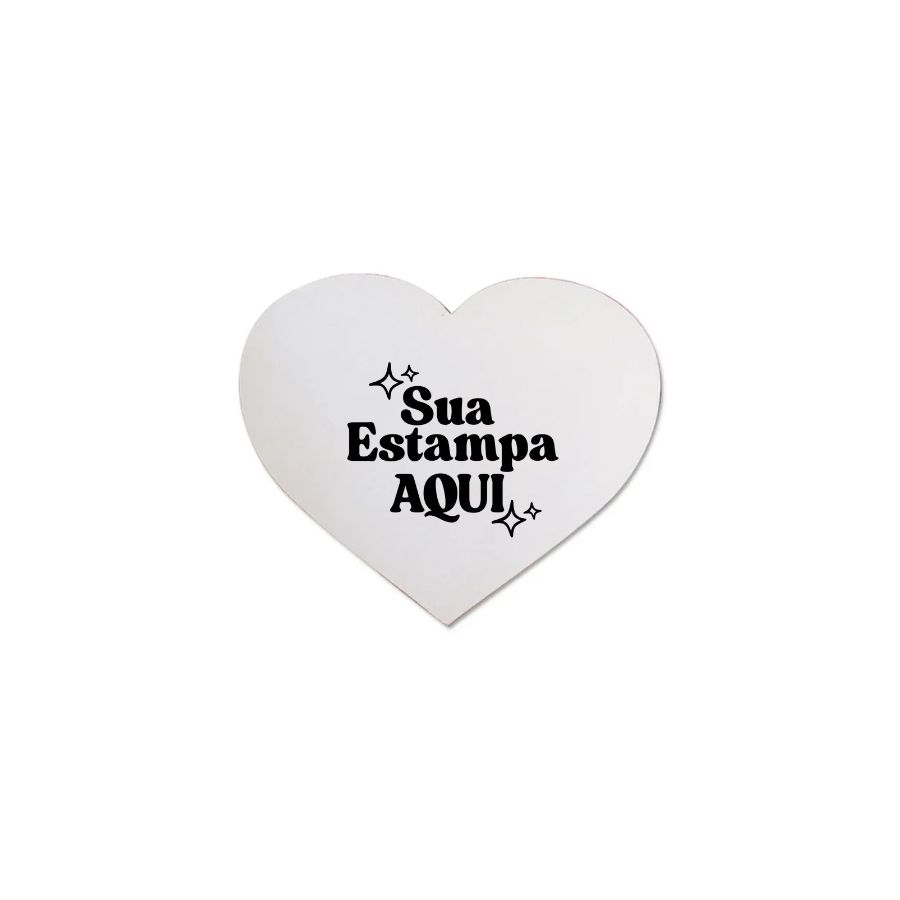Placa em MDF com tecido no formato coração, 19x22cm, personalizável com estampa, ideal para decoração afetiva, presentes e brindes exclusivos.