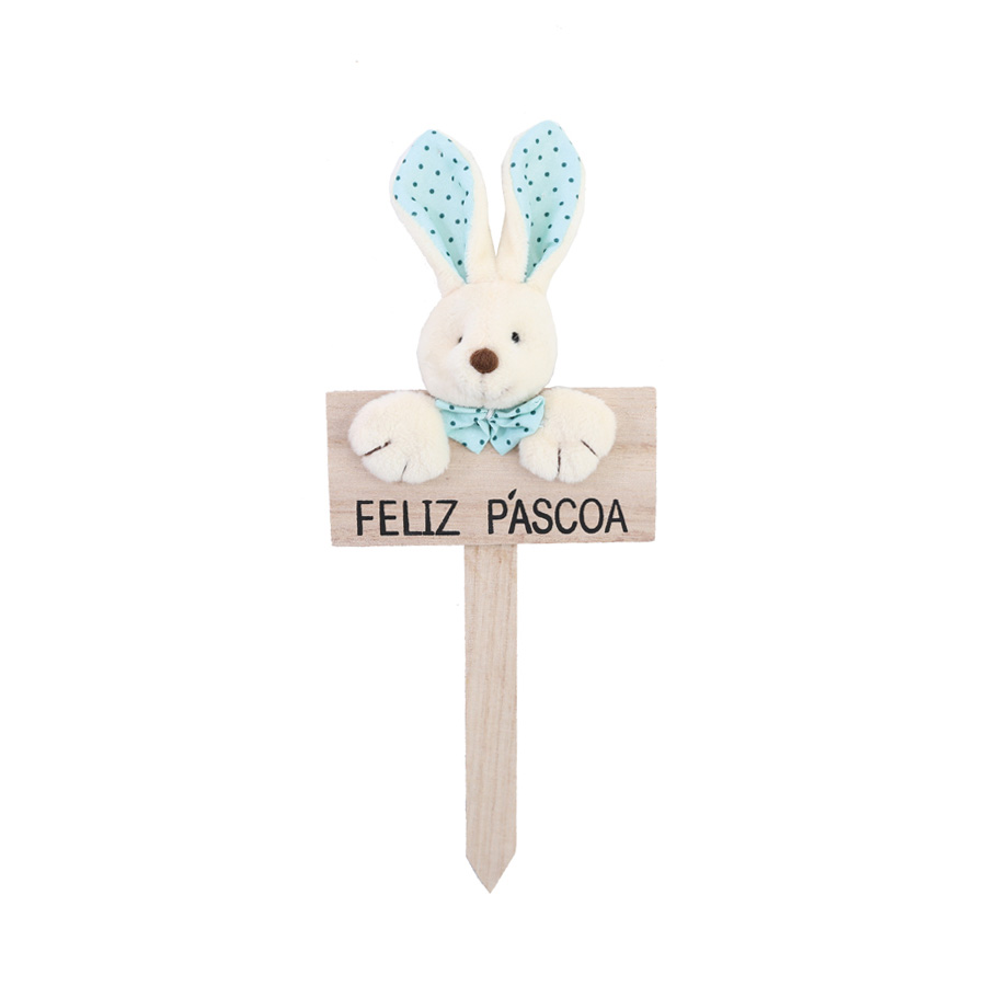 Placa decorativa com coelho escrito feliz páscoa na cor azul