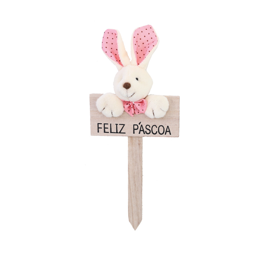 Placa decorativa com coelho escrito feliz páscoa na cor rosa