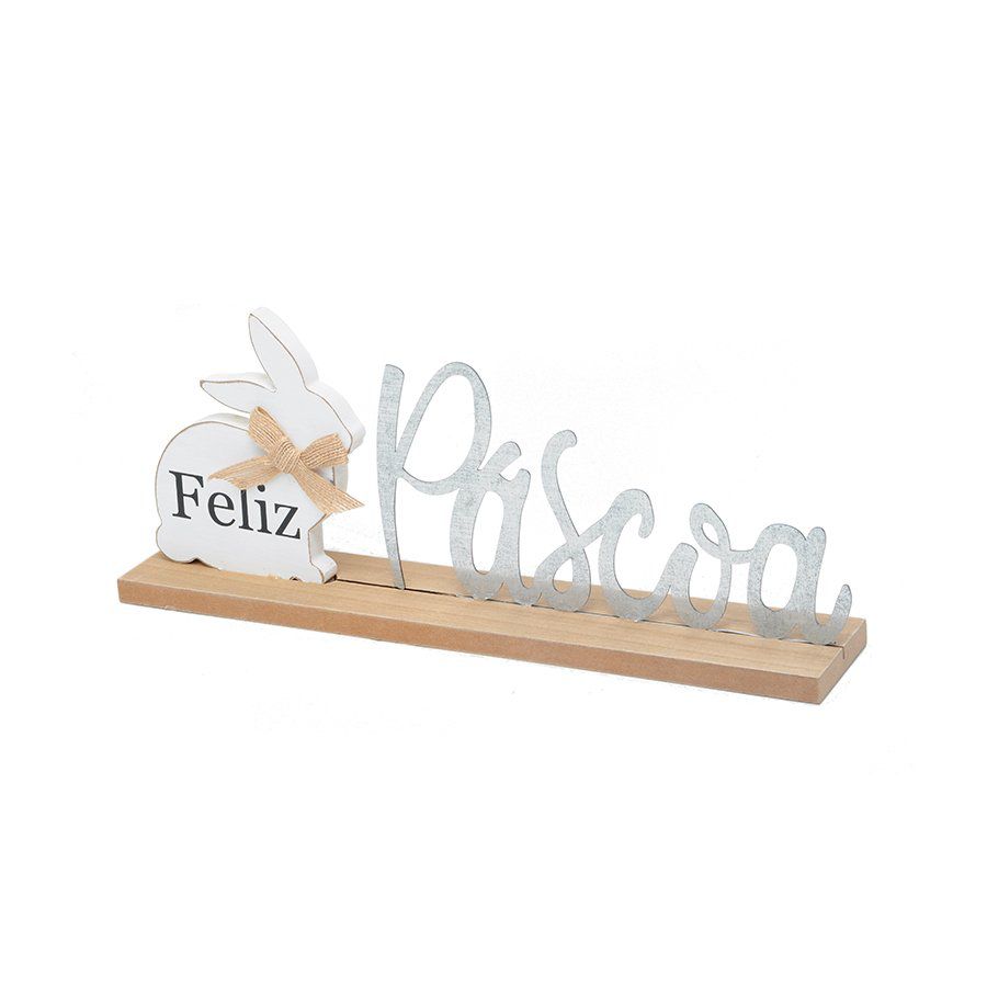 Placa de mesa, ou letreiro decorativo, com a mensagem feliz Páscoa! É um item com um design que harmoniza com qualquer ambiente da sua casa!