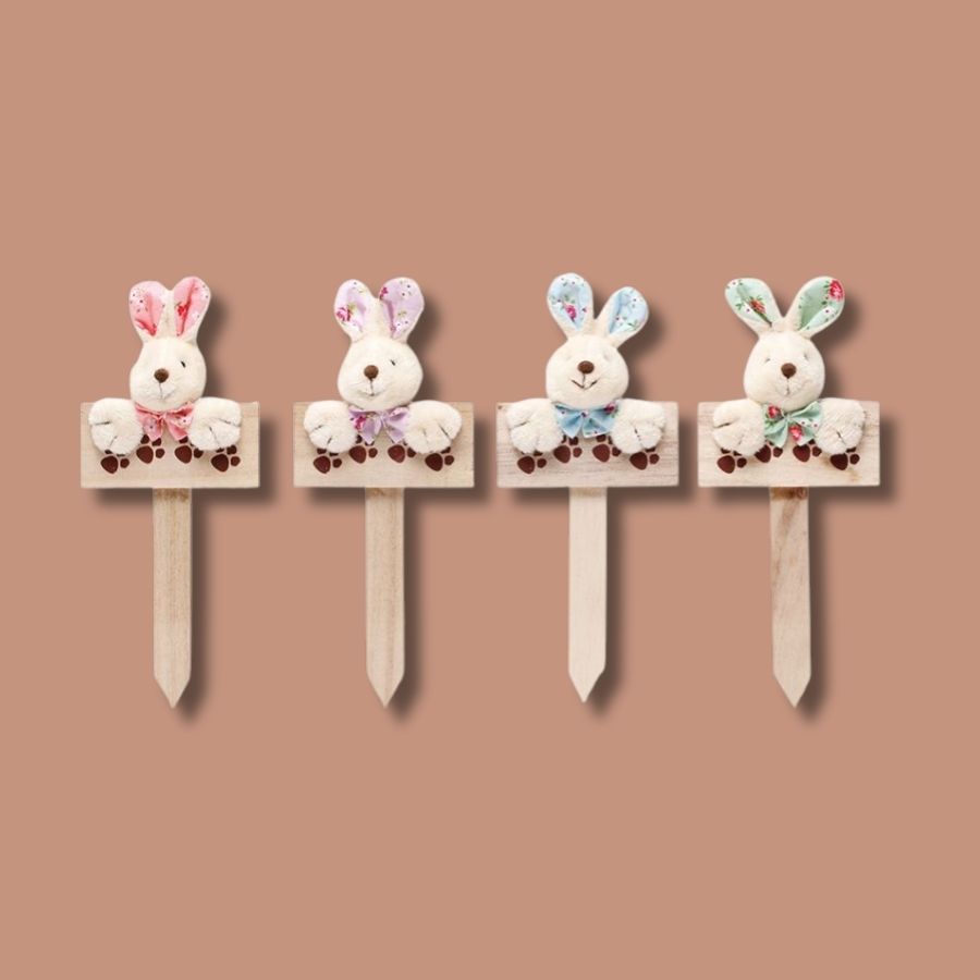 Plaquinha em Madeira Coelho Floral - 18cm x 8cm - Cromus Páscoa - Rizzo Embalagens