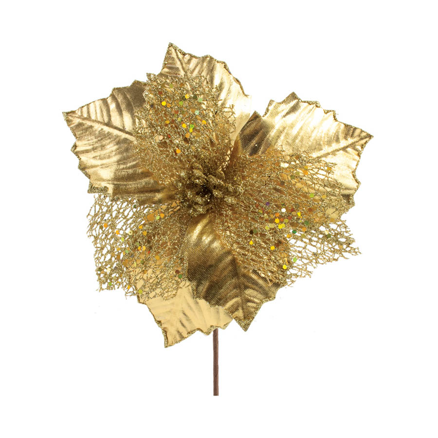 Poinsétia Decorativa - Branca com Glitter Dourado - 26cm - 1 unidade - Cromus - Rizzo