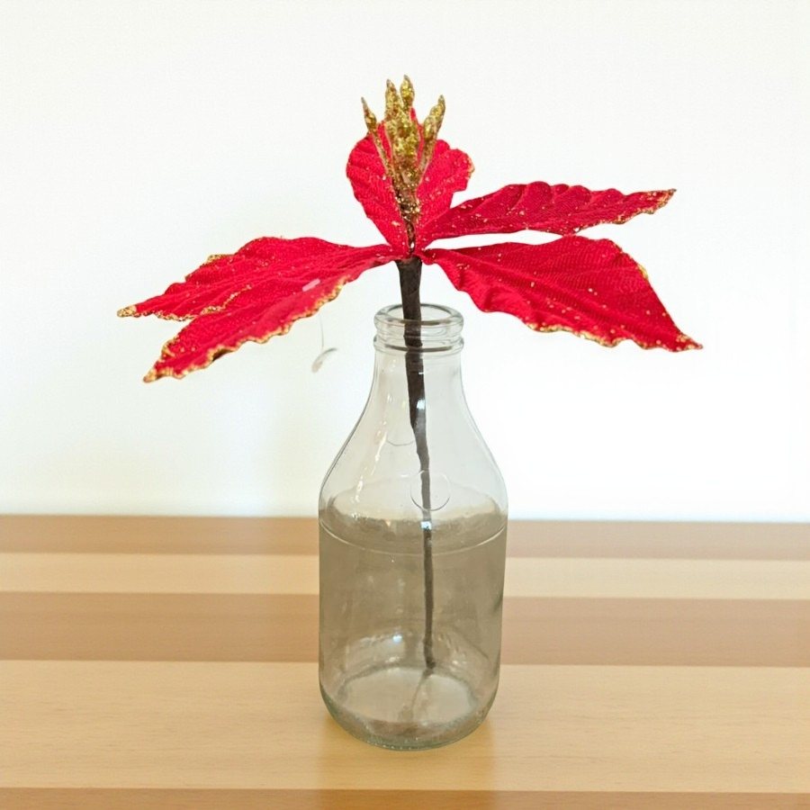 Perfeita para composições tradicionais ou modernas, a poinsétia vermelho com glitter dourado traz contraste e destaque à decoração natalina. Seu design refinado valoriza qualquer espaço, seja residencial, comercial ou vitrines temáticas, proporcionando charme e sofisticação nas festas de fim de ano.