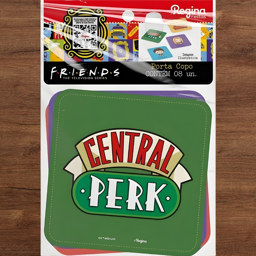 Ideal para aniversários, confraternizações e encontros entre amigos, o porta copo alia praticidade e estilo. Ele ajuda a manter a mesa organizada, evita marcas de copos e ainda complementa o tema Friends, tornando qualquer ocasião mais envolvente e memorável.