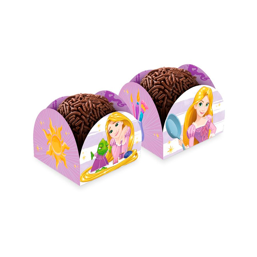 Forminha para pequenos doces em papel off-se, decorado com tema da princesa Rapunzel