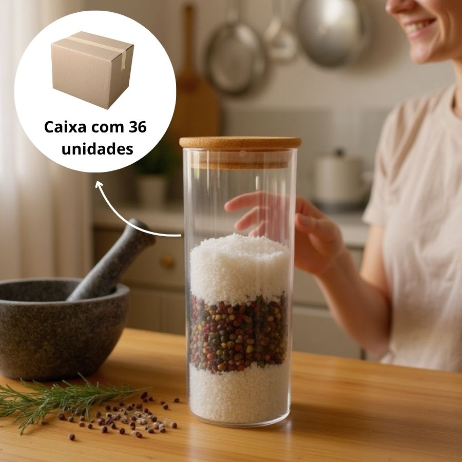 O Pote de Vidro Hermético com Tampa de Bambu - 6,5x15cm - 375ml é ideal para quem busca organização, beleza e praticidade na cozinha ou na despensa. Produzido em vidro transparente de alta resistência, ele permite visualizar o conteúdo com facilidade, enquanto a tampa de bambu com vedação em silicone garante fechamento hermético, preservando a qualidade e o frescor dos alimentos por mais tempo.