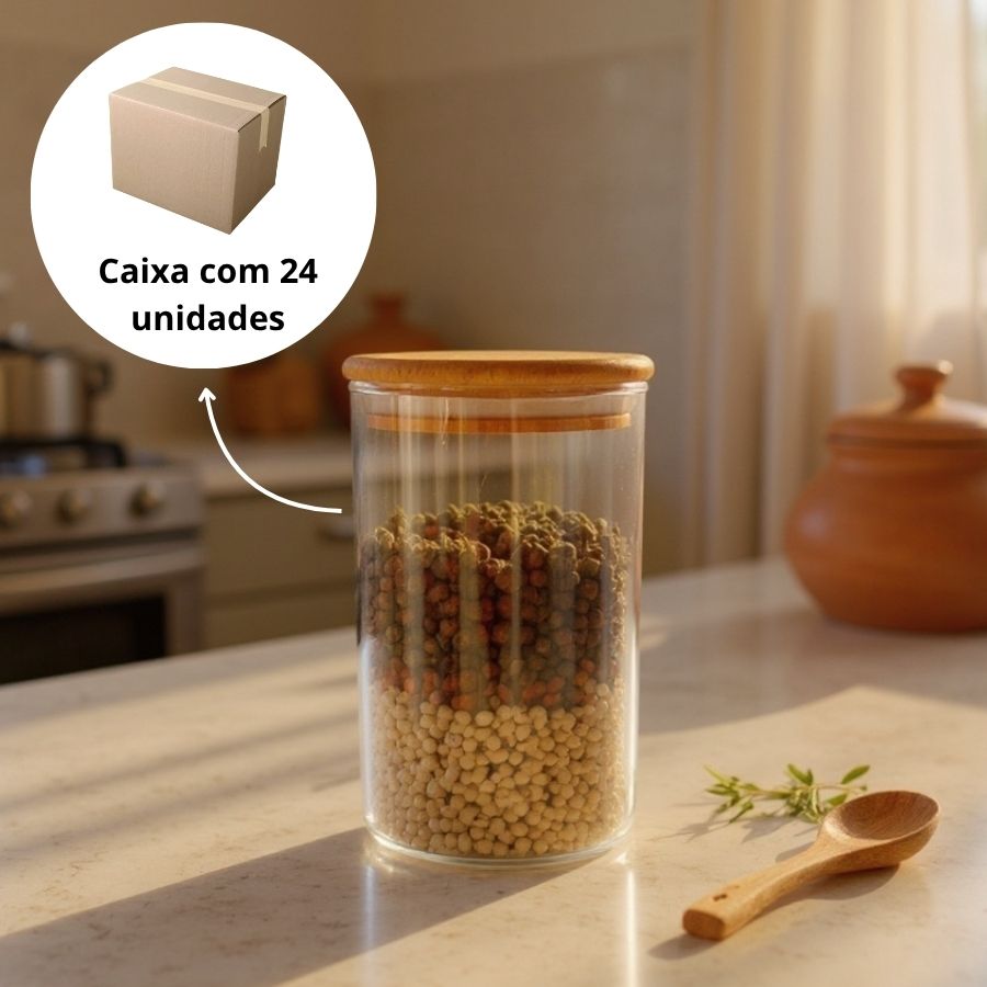O Pote de Vidro Hermético com Tampa de Bambu - 9x15cm - 700ml é a escolha ideal para quem busca praticidade, organização e estilo natural na cozinha ou despensa. Fabricado em vidro transparente resistente, permite visualizar facilmente o conteúdo, enquanto a tampa de bambu com vedação em silicone proporciona fechamento hermético, mantendo alimentos frescos e protegidos da umidade.
