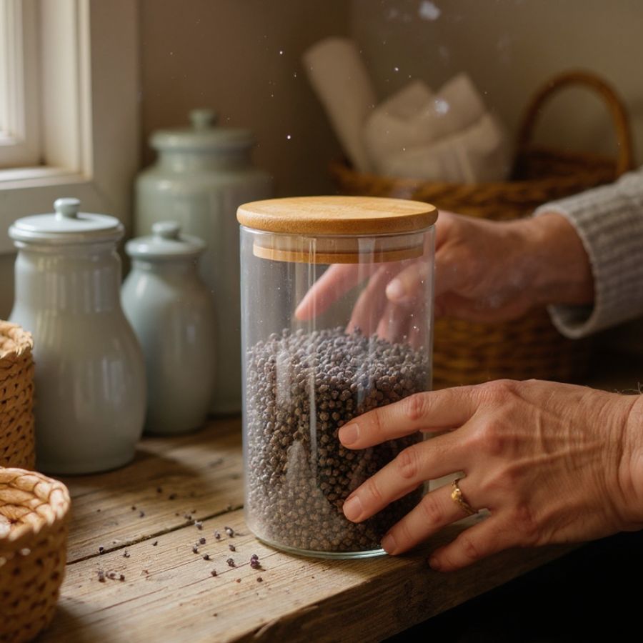 O Pote de Vidro Hermético com Tampa de Bambu de 900ml é durável, funcional e elegante, ideal para conservar alimentos e organizar a cozinha com estilo e sustentabilidade.