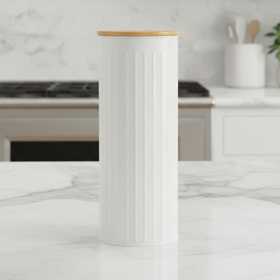 O pote decorativo de metal é uma peça funcional e elegante para organização e decoração de ambientes. Com dimensões de 28x11x11cm e formato alongado, combina praticidade com um visual moderno e clean. Sua tonalidade bege traz neutralidade e sofisticação, enquanto a tampa de bambu acrescenta um toque natural e acolhedor, ideal para compor cozinhas, prateleiras ou aparadores dentro do conceito de home decor.