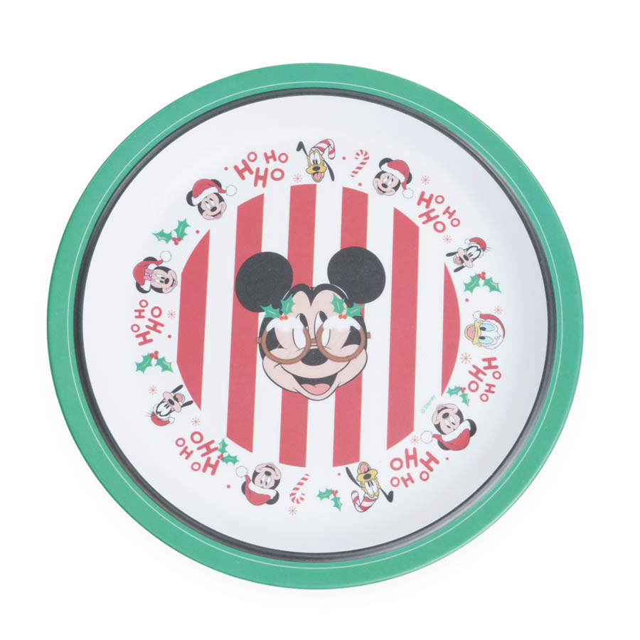 Prato de bambu com o tema de Natal do Mickey "Ho Ho Ho", destacando-se pelo design alegre e vibrante. Uma peça que traz a magia das festas e o encanto dos produtos Licenciados Disney para suas celebrações.