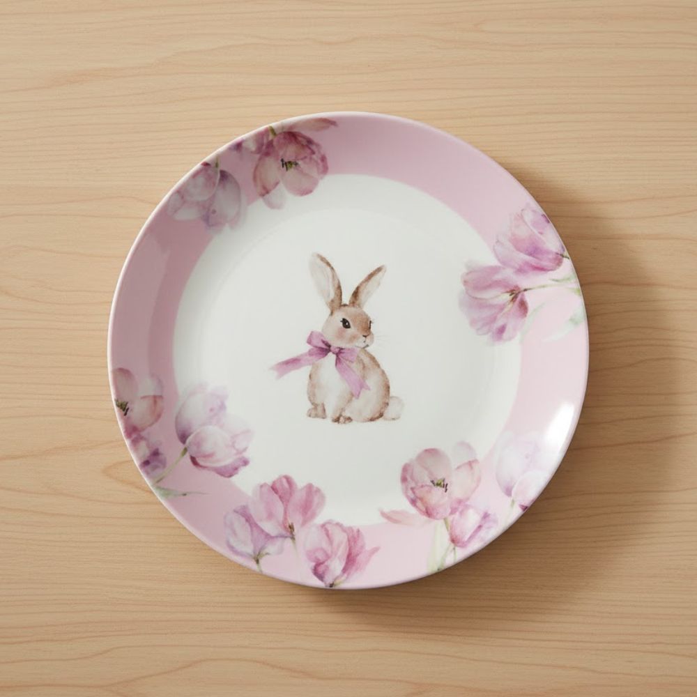 O Prato de Melamina é uma peça delicada e charmosa, perfeita para compor mesas temáticas com um toque alegre e sofisticado. Decorado com coelho, flores e fundo roxo, traz um visual harmonioso e encantador, ideal para a Páscoa ou para quem gosta de peças decorativas diferenciadas.