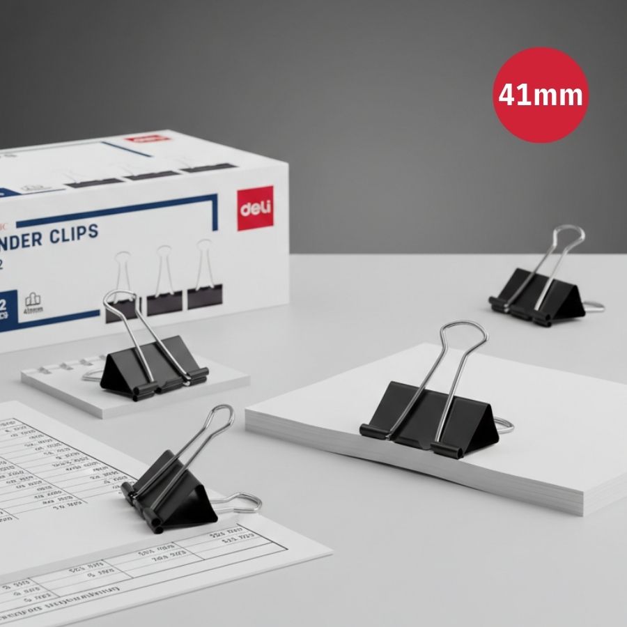 Fabricado em material durável e de alta resistência, é indicado para uso escolar, profissional ou em escritório. O tamanho de 41mm oferece excelente desempenho para agrupar grandes volumes de papel. Fornecido em caixa com 12 unidades, é uma solução prática para manter documentos sempre organizados.
