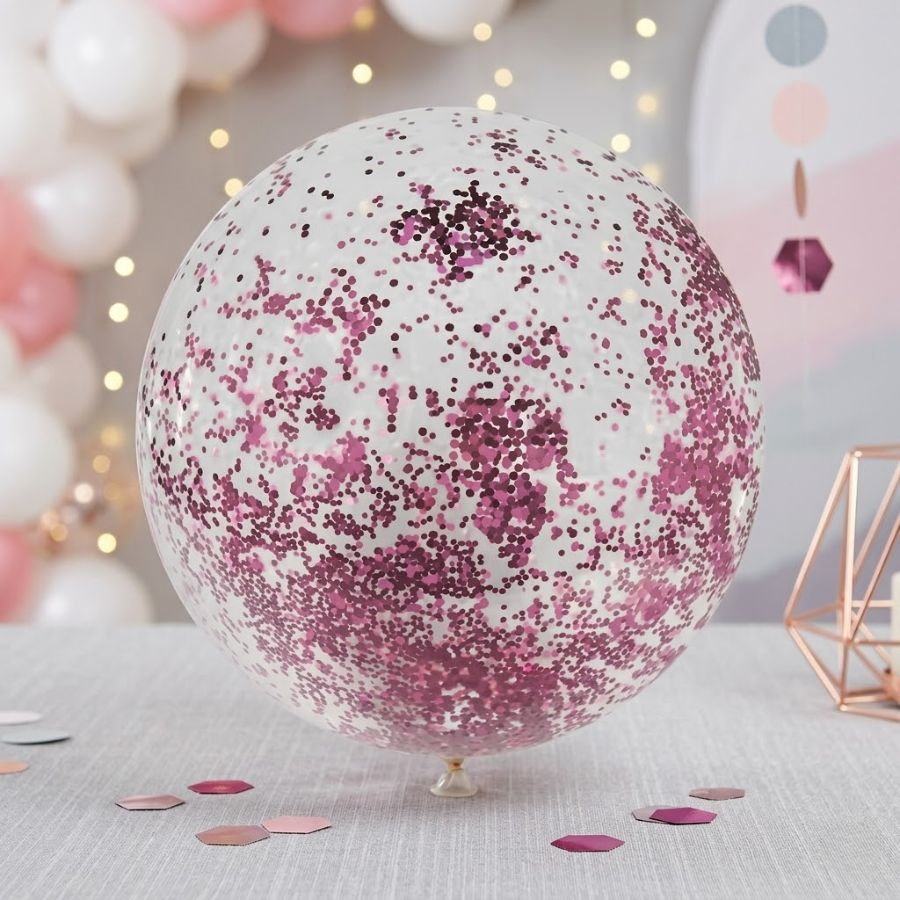 Balão Bubble Transparente com Confete Hexagonal Rosa Claro - 11" 26cm - 1 unidade - PartiuFesta - Rizzo