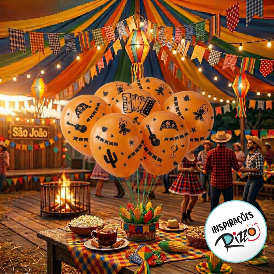 Balão de Festa decorado São João Laranja 9'' polegadas - 25 unidades - Festcolor – Rizzo