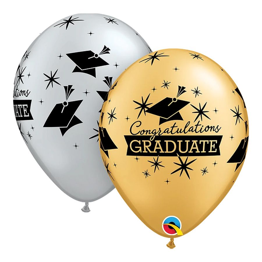 1 pacote com 50 unidades no modelo "parabéns graduado" na cor prata/ouro