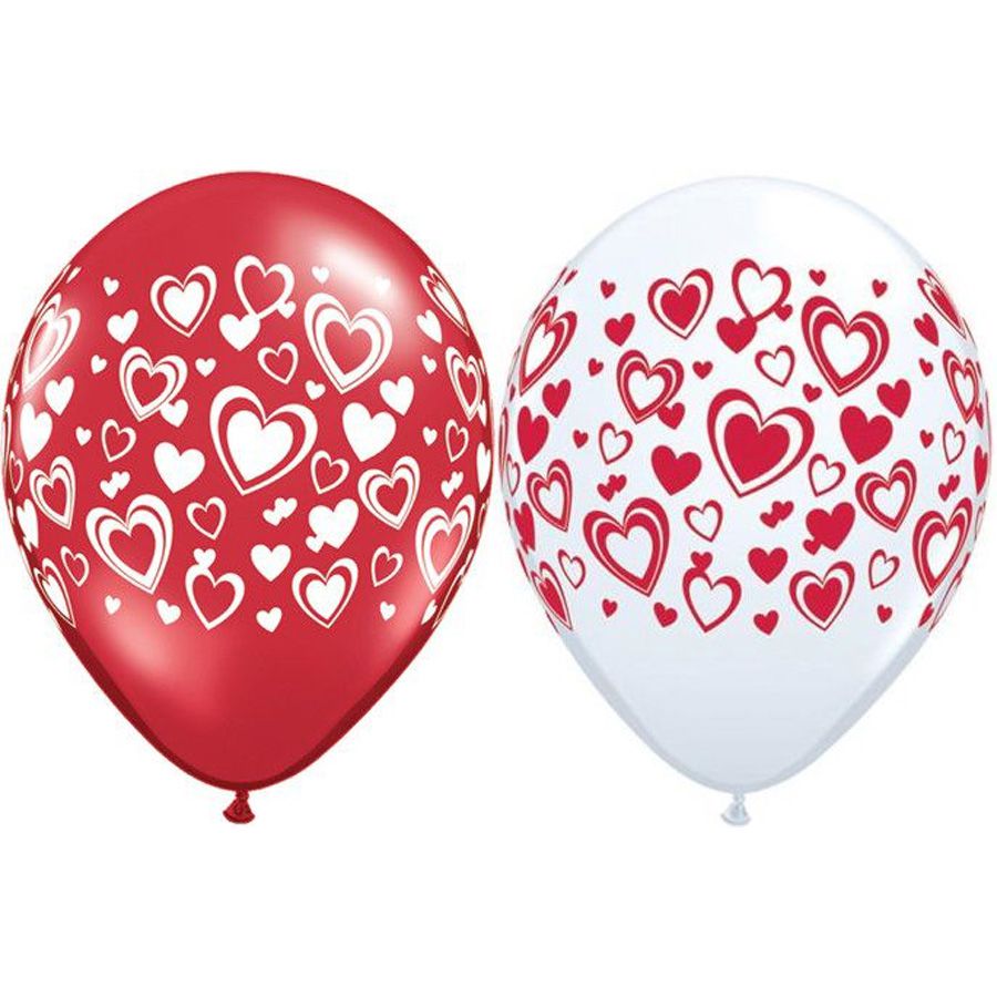 Látex 11 polegadas, aproximadamente 28 cm Contém 50 unidades. 1 pacote com 50 unidades no modelo coração duplo nas cores vermelho rubi e branco Aqui tudo é de extrema qualidade. Transformamos simples momentos, em grandes realizações.