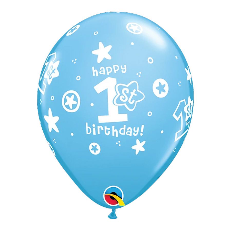 Látex 11 polegadas, aproximadamente 27 cm Contém 50 unidades. 1 pacote com 50 unidades no modelo "feliz 1° aniversário" na cor azul Aqui tudo é de extrema qualidade. Transformamos simples momentos, em grandes realizações.