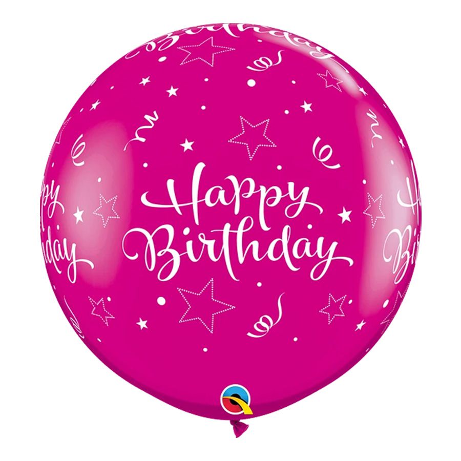 Látex 3 pés, aproximadamente 90 cm Contém 2 unidades. 1 pacote com 2 unidades no modelo "feliz aniversário" na cor cereja Aqui tudo é de extrema qualidade. Transformamos simples momentos, em grandes realizações.