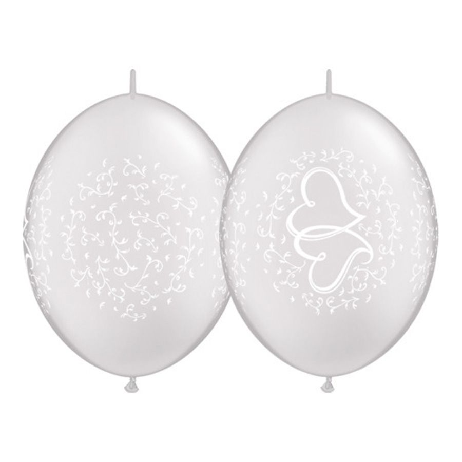 Látex 12 polegadas, aproximadamente 30 cm Contém 50 unidades. 1 pacote com 50 unidades no modelo quick link corações entrelaçados na cor branco Aqui tudo é de extrema qualidade. Transformamos simples momentos, em grandes realizações.