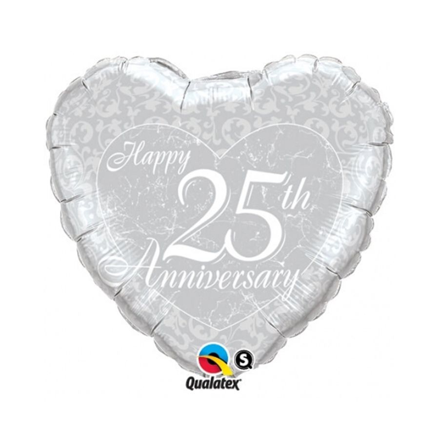 Balão microfoil no modelo coração "feliz 25º aniversário".