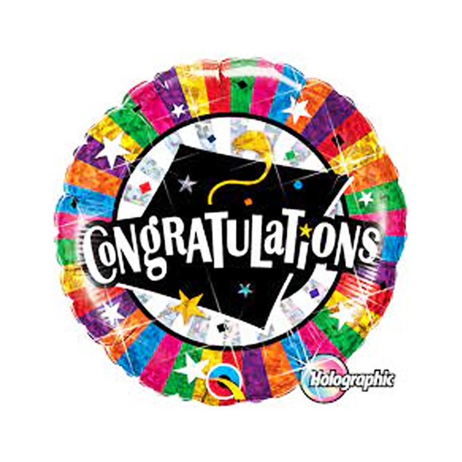Balão microfoil no modelo redondo holográfico Congratulations Graduado.