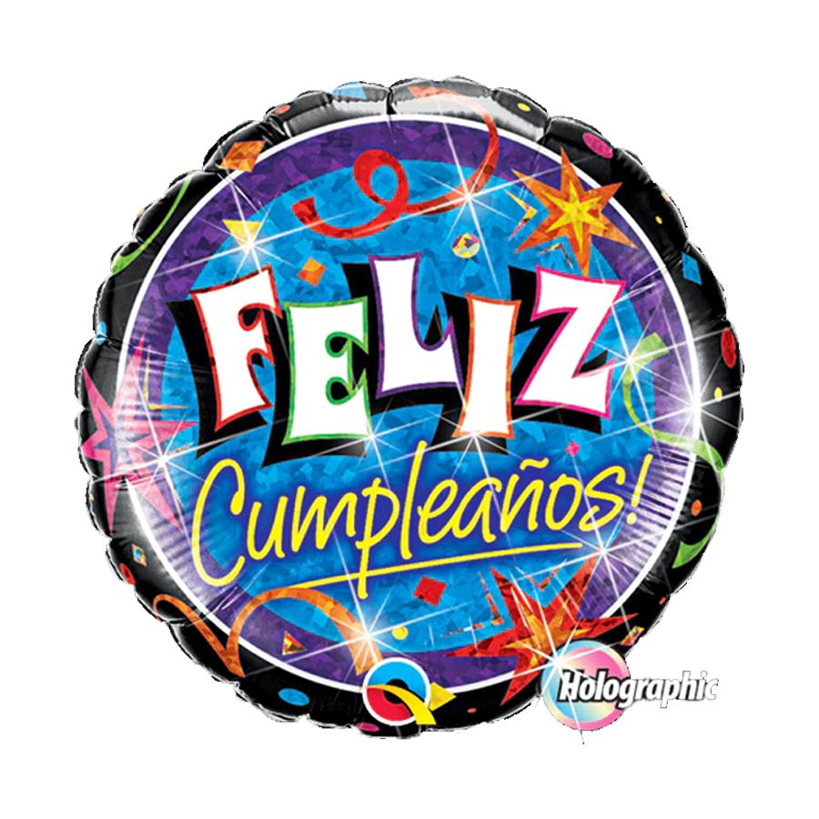 Balão microfoil no modelo redondo holográfico "feliz aniversário".