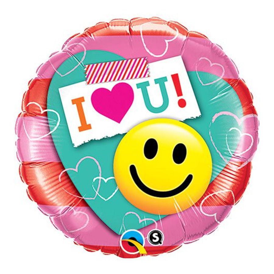 Balão microfoil no modelo redondoi "eu te amo" carinha sorridente