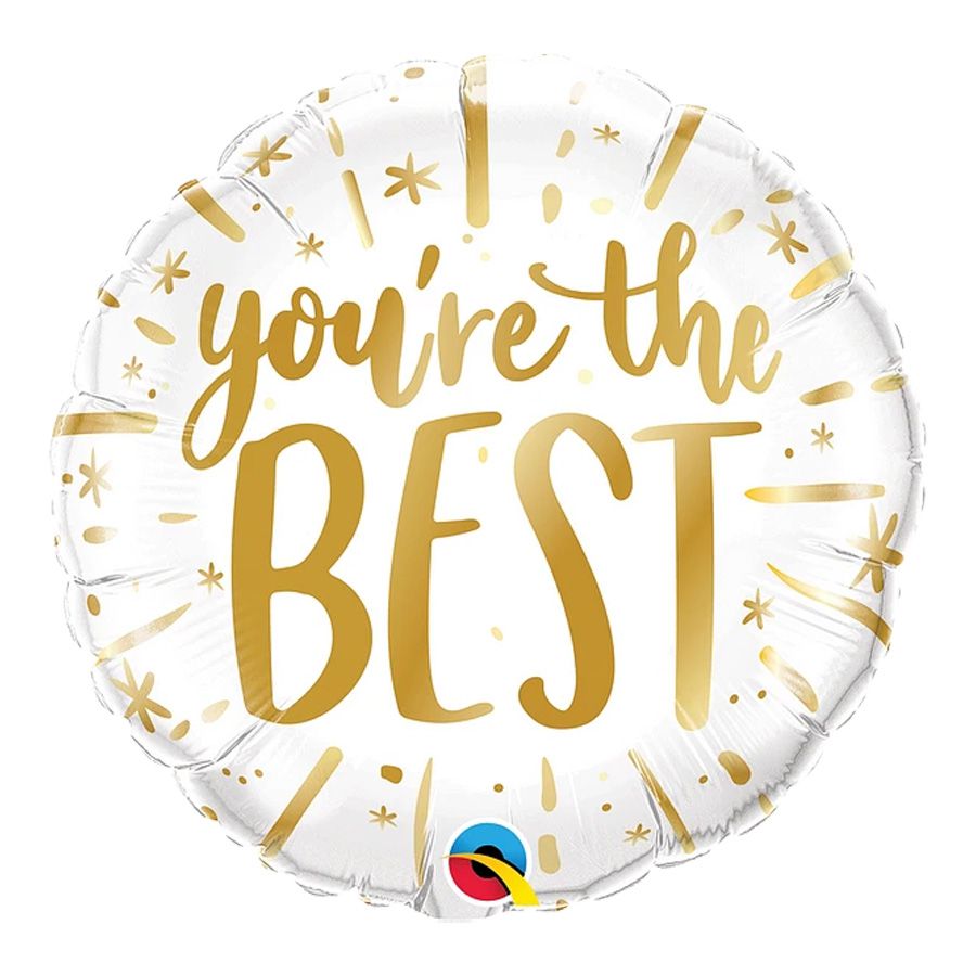 Balão microfoil no modelo redondo "você é o melhor" dourado