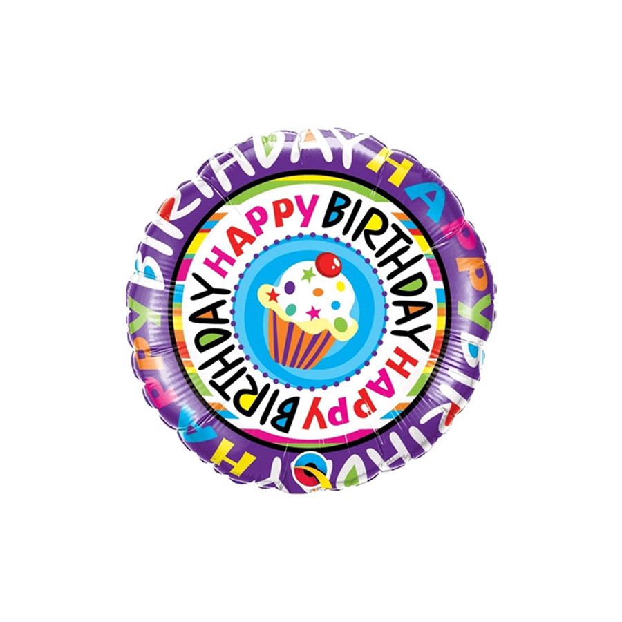 Balão microfoil no modelo redondo Birthday Cupcake (Aniversário Cupcake) Repetido.