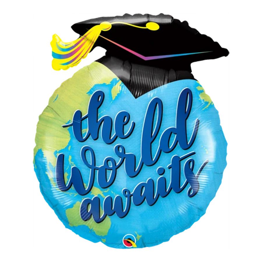 Balão microfoil no modelo redondo "o mundo espera" graduado