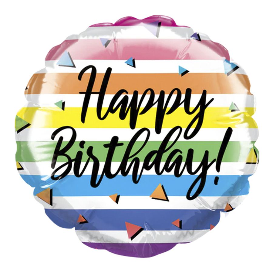 Balão microfoil no modelo redondo "feliz aniversário" listras elegante