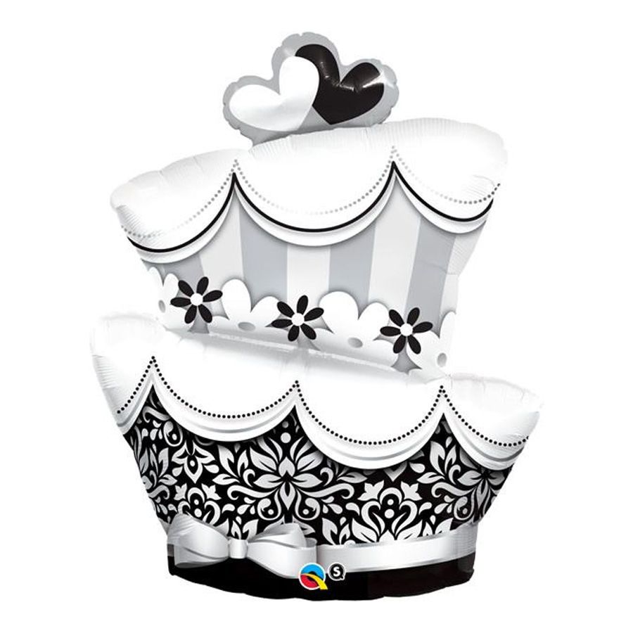 Balão microfoil no modelo bolo de casamento fabuloso na cor preto e branco