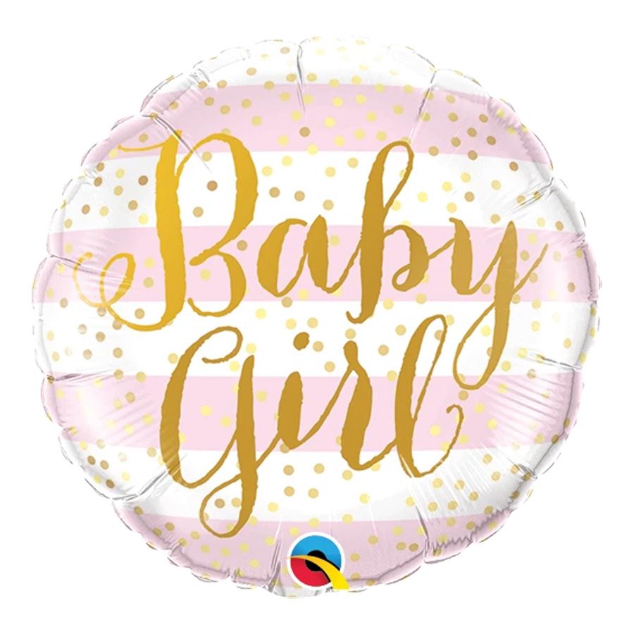 Balão microfoil no modelo redondo "bebezinha" listrado rosa