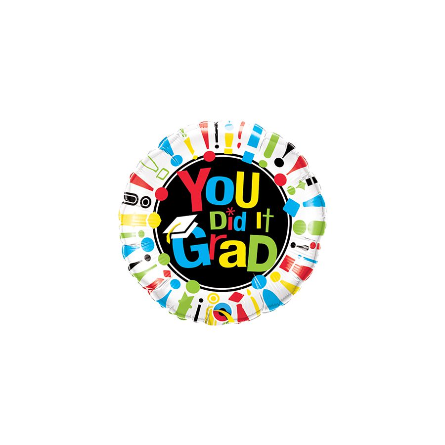 Balão microfoil no modelo redondo You Did It Grad (Você Conseguiu Graduar).