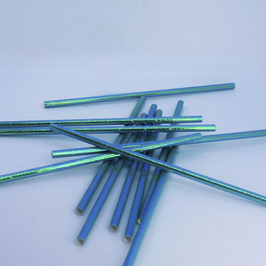 Canudo de papel biodegradável, ecológico, em papel kraft colorido verde nacarado. Atenção: pode amolecer após contato prolongado com líquido (após vários minutos). Não é defeito, é apenas o propósito do produto, já que é biodegradável.