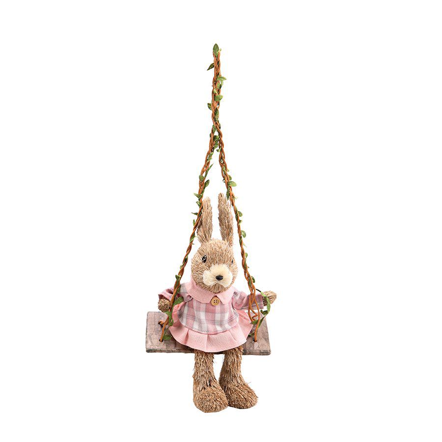 Coelho de Páscoa Decorativo no Balanço Rústico - Rosa - 1 unidade - Cromus - Rizzo Embalagens