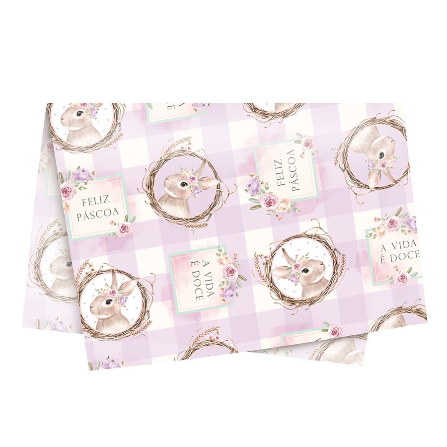 Folha de Papel Seda Decorado 44x69 - Serena Lilás - 10 Unidades - Cromus Páscoa - Rizzo