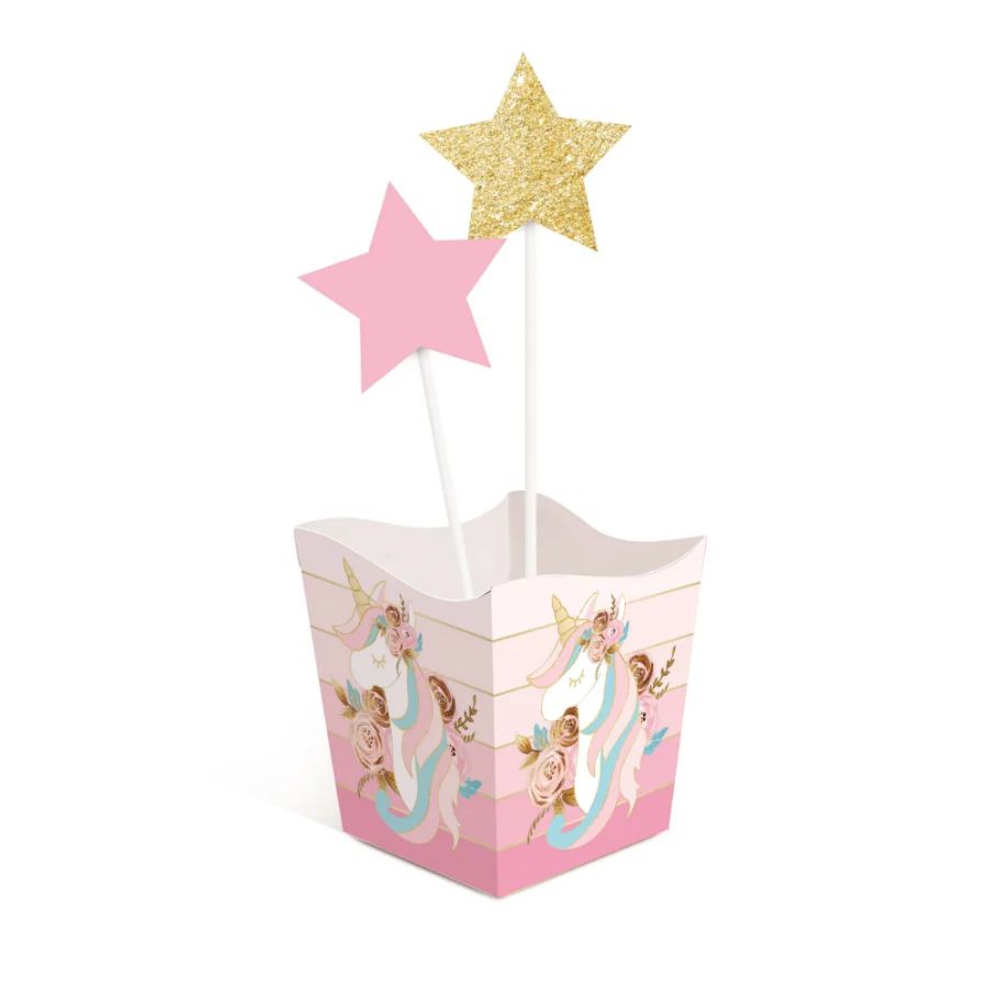 Kit Cachepot com Pick - Festa Unicórnio - 4 unidades - Cromus - Rizzo Festas