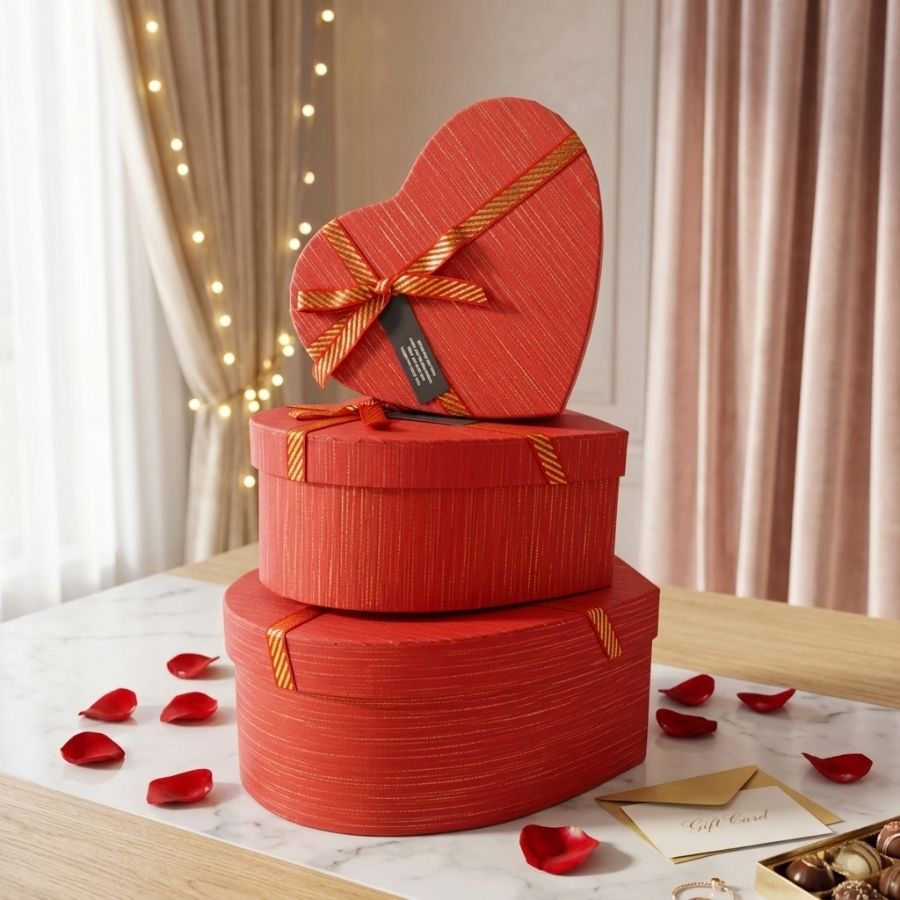 Composto por três caixas em formato de coração, encaixadas uma dentro da outra, esse conjunto é ideal para criar apresentações impactantes e cheias de emoção. Indicado para ocasiões como Dia dos Namorados, aniversários, datas comemorativas e momentos românticos, ele valoriza qualquer presente, desde chocolates até itens personalizados. Seu grande diferencial está no design sofisticado, acabamento refinado e efeito surpresa, que tornam o ato de presentear ainda mais marcante.