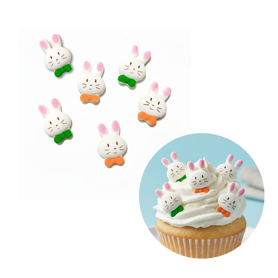 Confeitos de açúcar coloridos artificialmente, com o formato de coelho ; ideal para você fazer lindas decorações em bolos, cupcakes, docinhos e muito mais. Deixe seus eventos com um toque muito mais sofisticado e elegante.