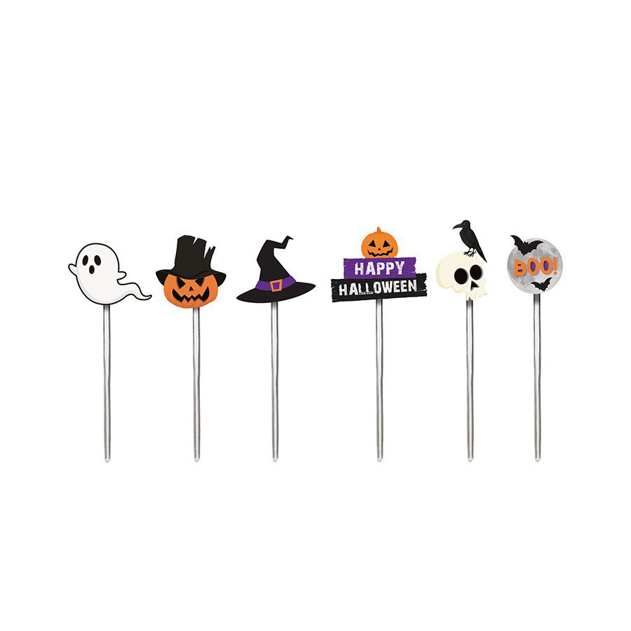 Faça uma linda decoração para sua festa com esses Picks Decorativos . Esses enfeites de Halloween vão deixar sua festa de aniversário bem divertida, além de ser uma decoração que deixa qualquer cupcake e docinho muito mais bonito. Contém elementos característicos do Dia Das Bruxas, como fastasmas, caveiras e abóboras, que sempre estão presentes nesta celebração. Ótimo custo benefício para quem quer uma decoração simples, mas que surpreenderá todos os convidados