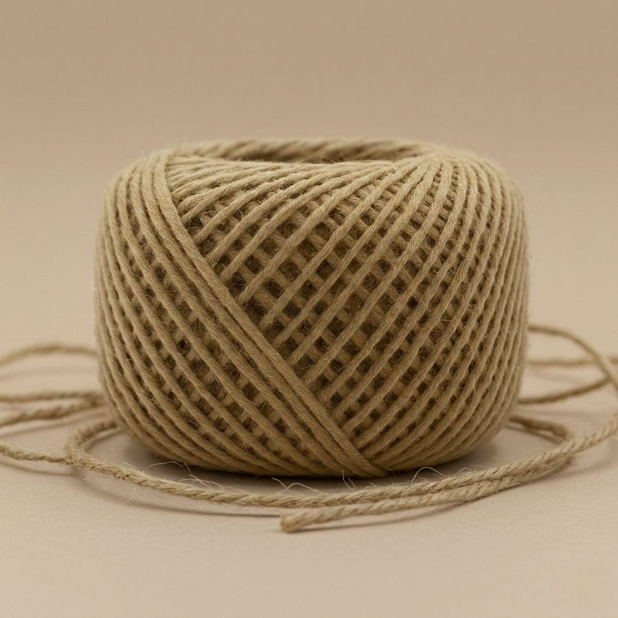 Fio de juta natural com 1 mm de espessura e 100 m de comprimento, ideal para artesanato, decoração e embalagens rústicas.