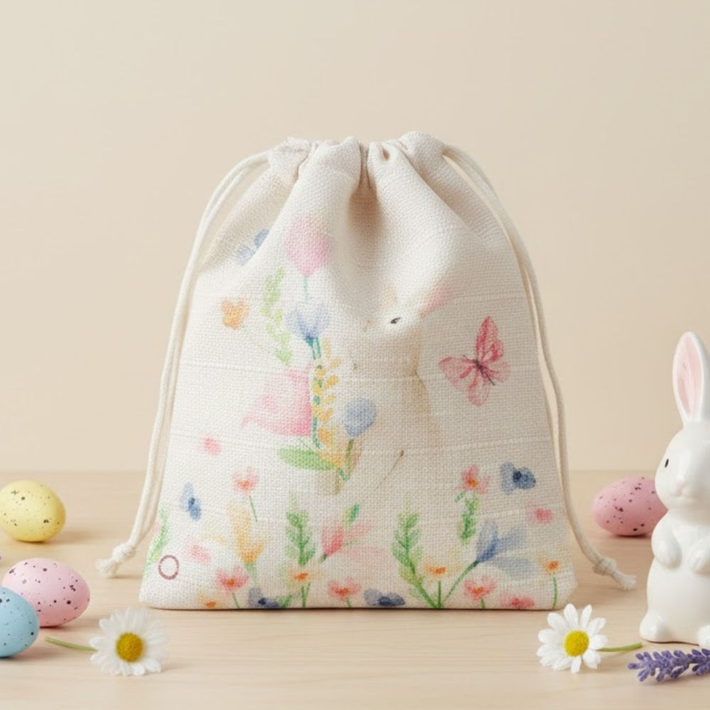 Confeccionado em algodão, o saco é leve, resistente e reutilizável, ideal para acomodar pequenos itens com delicadeza. No tamanho 14x12cm, é perfeito para lembrancinhas de Páscoa, mini chocolates, doces artesanais e pequenos mimos, valorizando a apresentação com um toque artesanal e encantador.