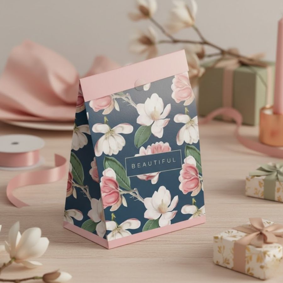 Saco de papel com estampa floral Pretty Magnolia, ideal para presentes delicados, lembranças e embalagens elegantes.