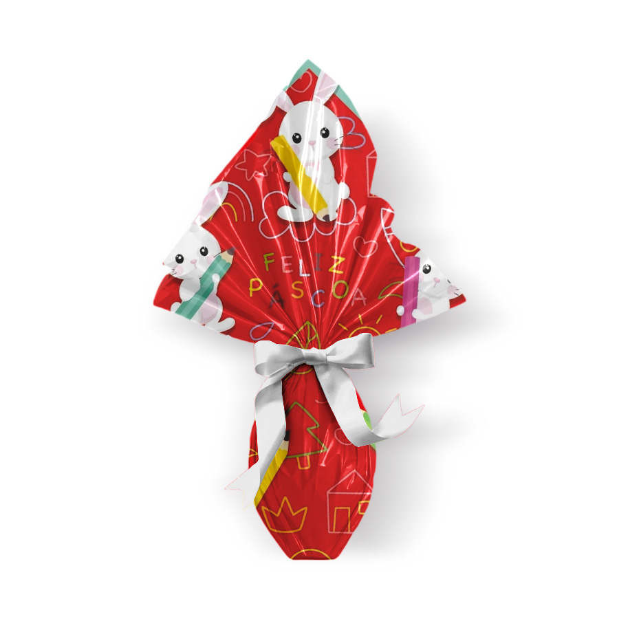 Saco Express tamanho 24x24cm na cor lápis vermelha é ideal para embalar ovos de Páscoa de 100g a 150g com praticidade e charme. Seu material resistente protege o ovo, enquanto a cor vibrante realça a embalagem.